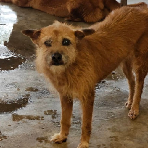 อาการ/โรค: สุนัขจรจัดข้างถนน มีอาการผอมโซ ขนเป็นสังกะตัง ตาอับเสบ เลยตาบอดหนึ่งข้าง