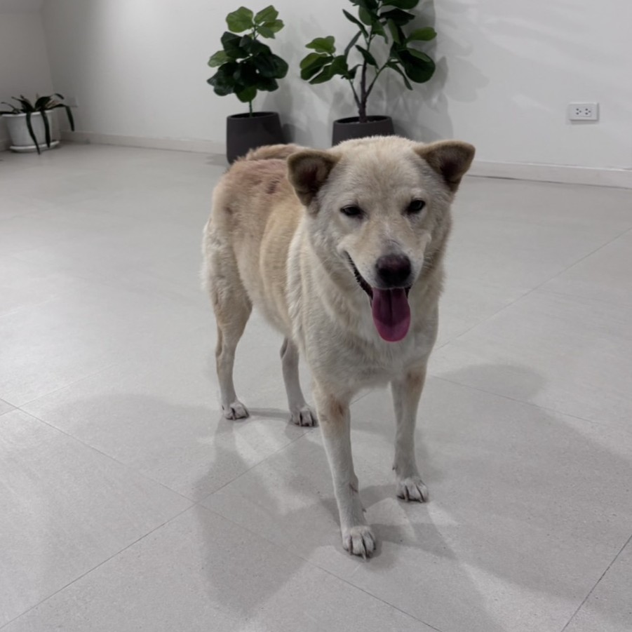 ลักษณะ: สุนัขไทยผสม ขนยาว สีครีม