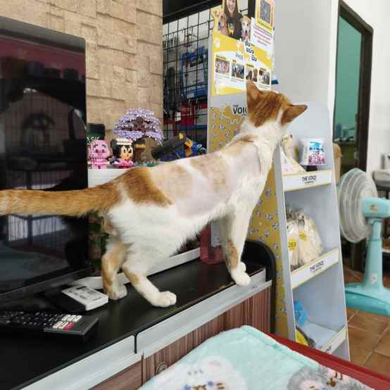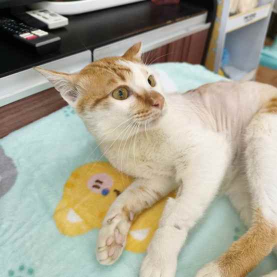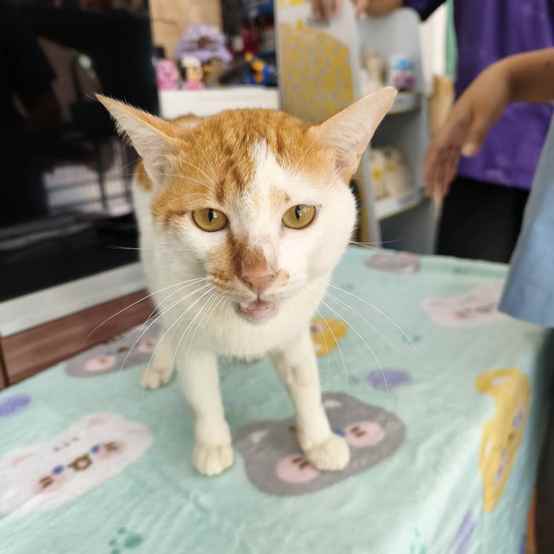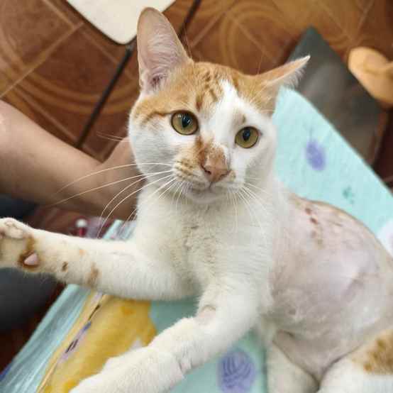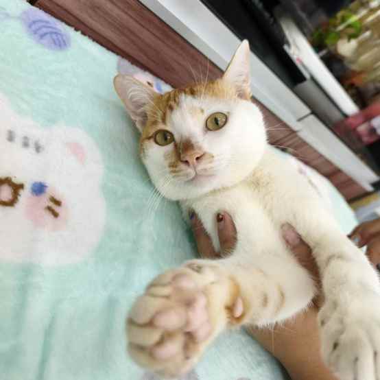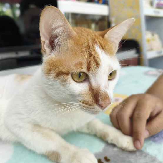 ลักษณะ: พันธ์ไทย สีขาวลายวัวส้ม