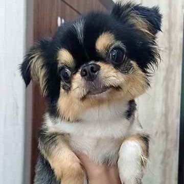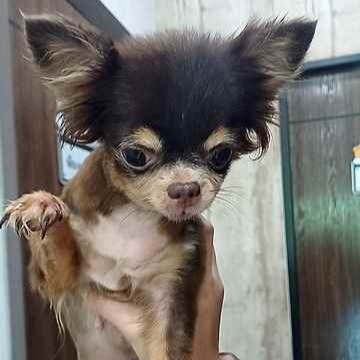 ลักษณะ: พันธ์ชิวาว่า สีครีม ลายน้ำตาลเข้ม