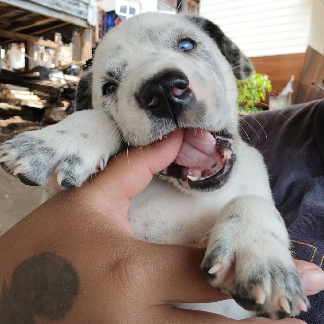 ลักษณะ: ขนสั้นสีขาว ลายจุดดำ ตา2สี หลังอาน